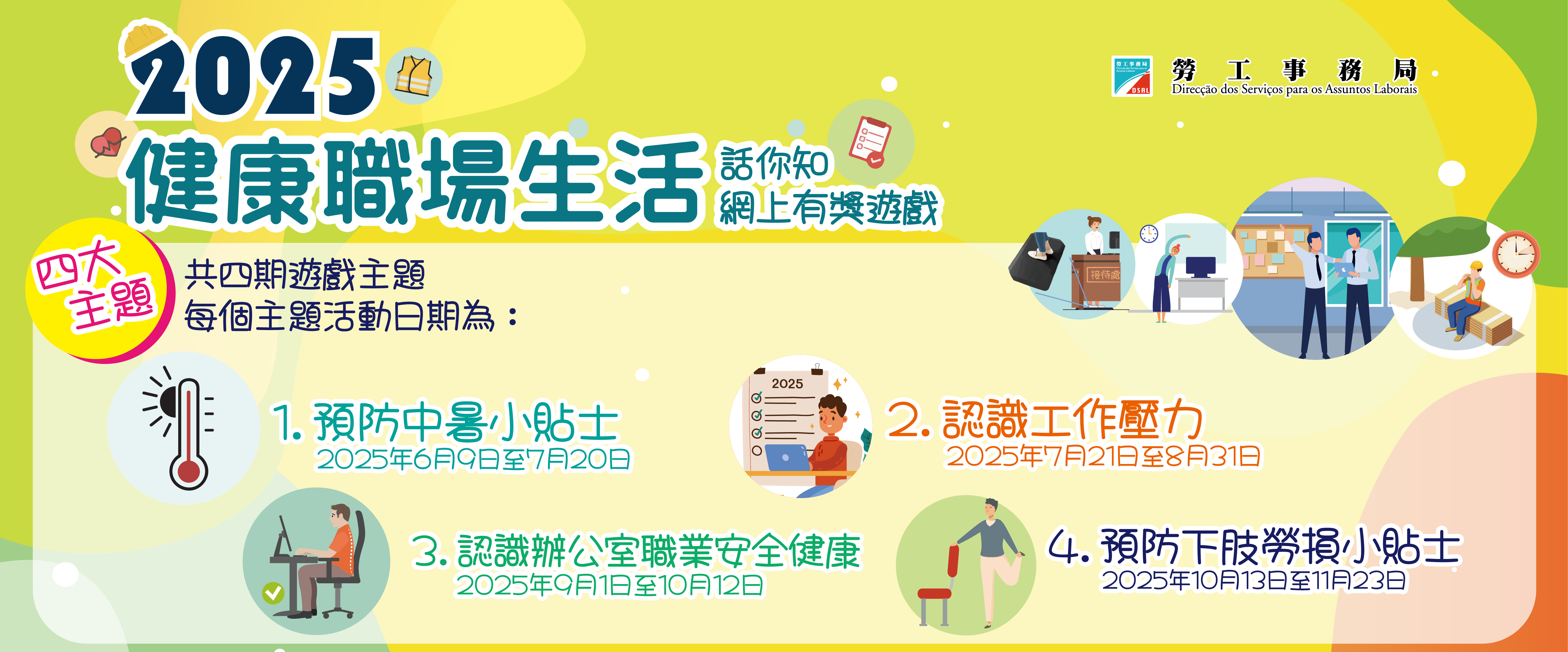 『健康职场生活话你知』有奖游戏是针对各行业常见的工作意外原因或职业健康危害因素为主题,透过有奖游戏向业界及广大巿民推广职业安全健康知识,持续提升全社会的职业安全健康意识,营造安全文化的氛围。