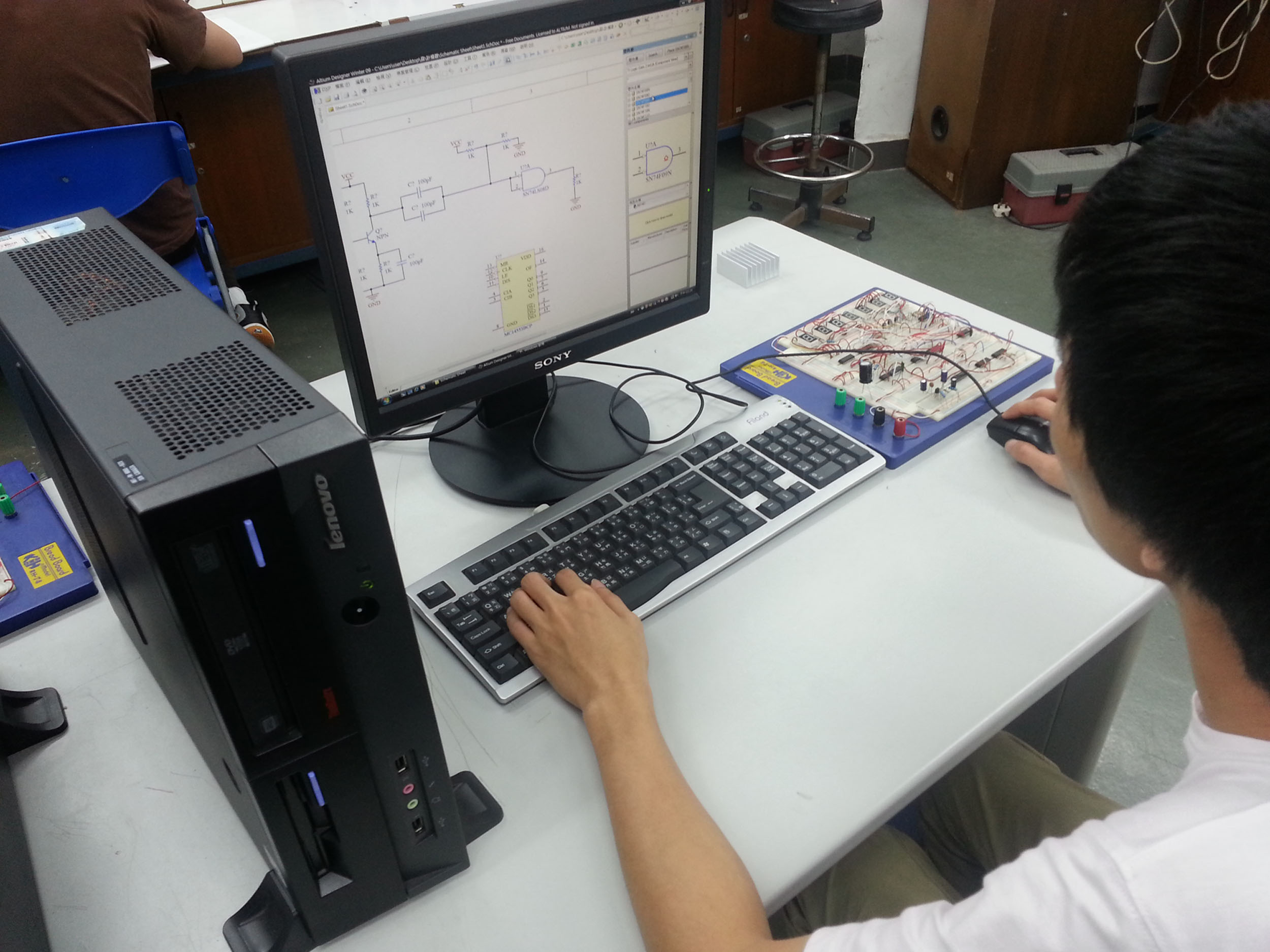 Formando do “Curso de electrónica de potência e telecomunicações” desenhando diagrama de circuito electrónico com o software Altium Designer