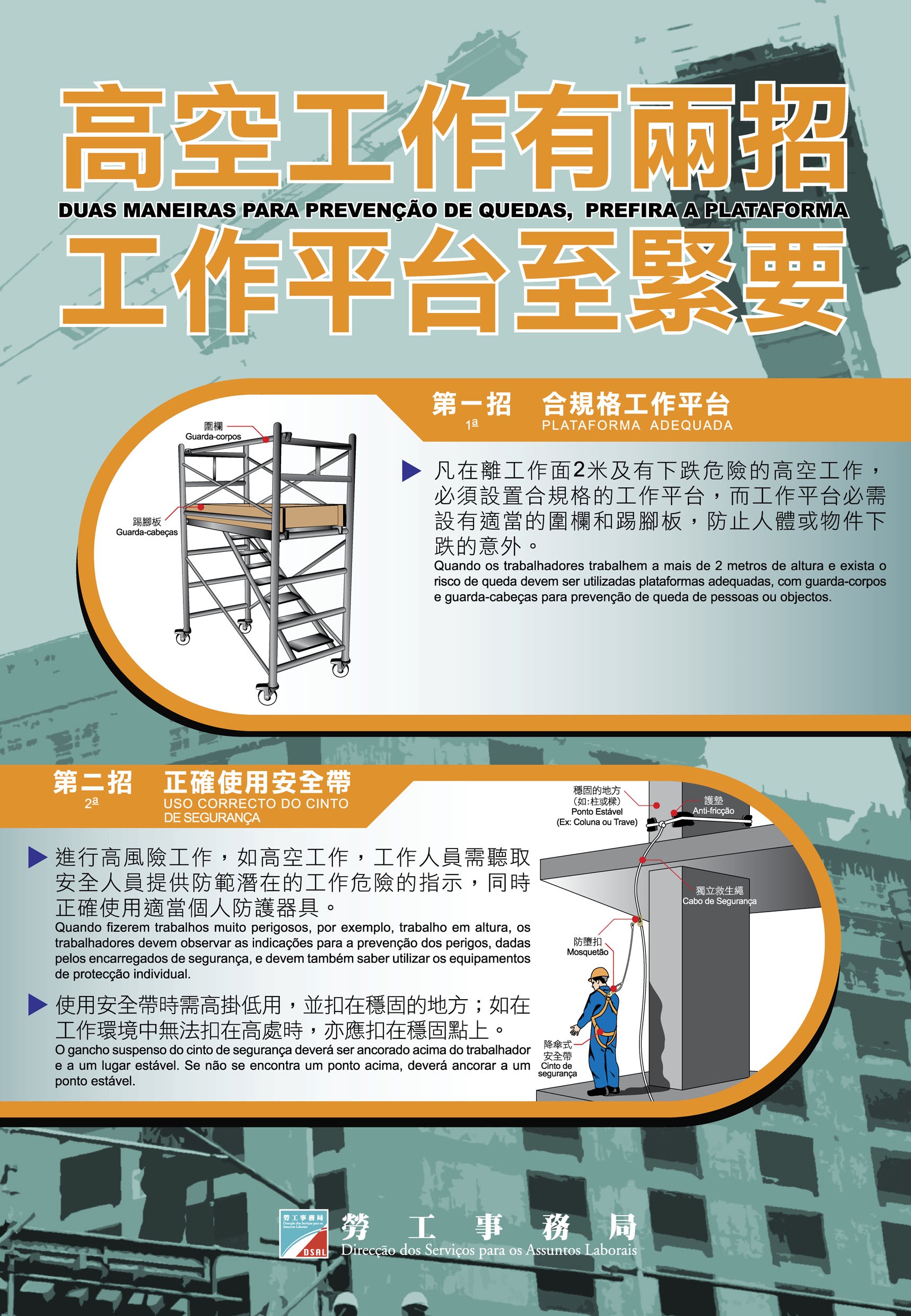 政府非常重视职业安全健康,为使各行各业享有安全健康的工作环境,保障本澳从业员的生命健康,除持续完善相关职安法例规定外,劳工事务局积极透过各种培训教育、宣传推广及巡查执法等手段,提升个人、企业,以至社区及市民大众的职安健水平。