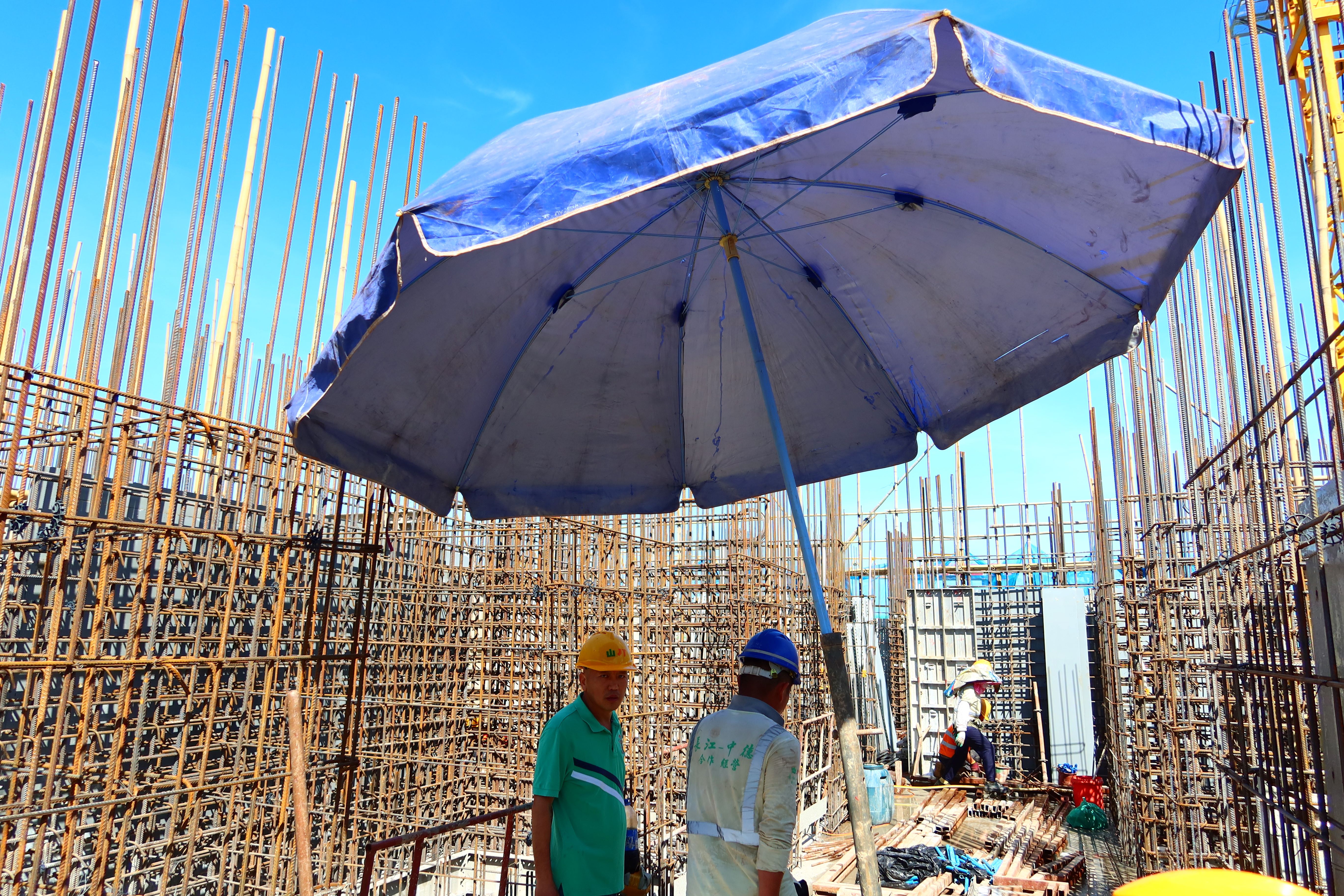 建筑工地设置休息驿站供工友避暑和补给饮用水
