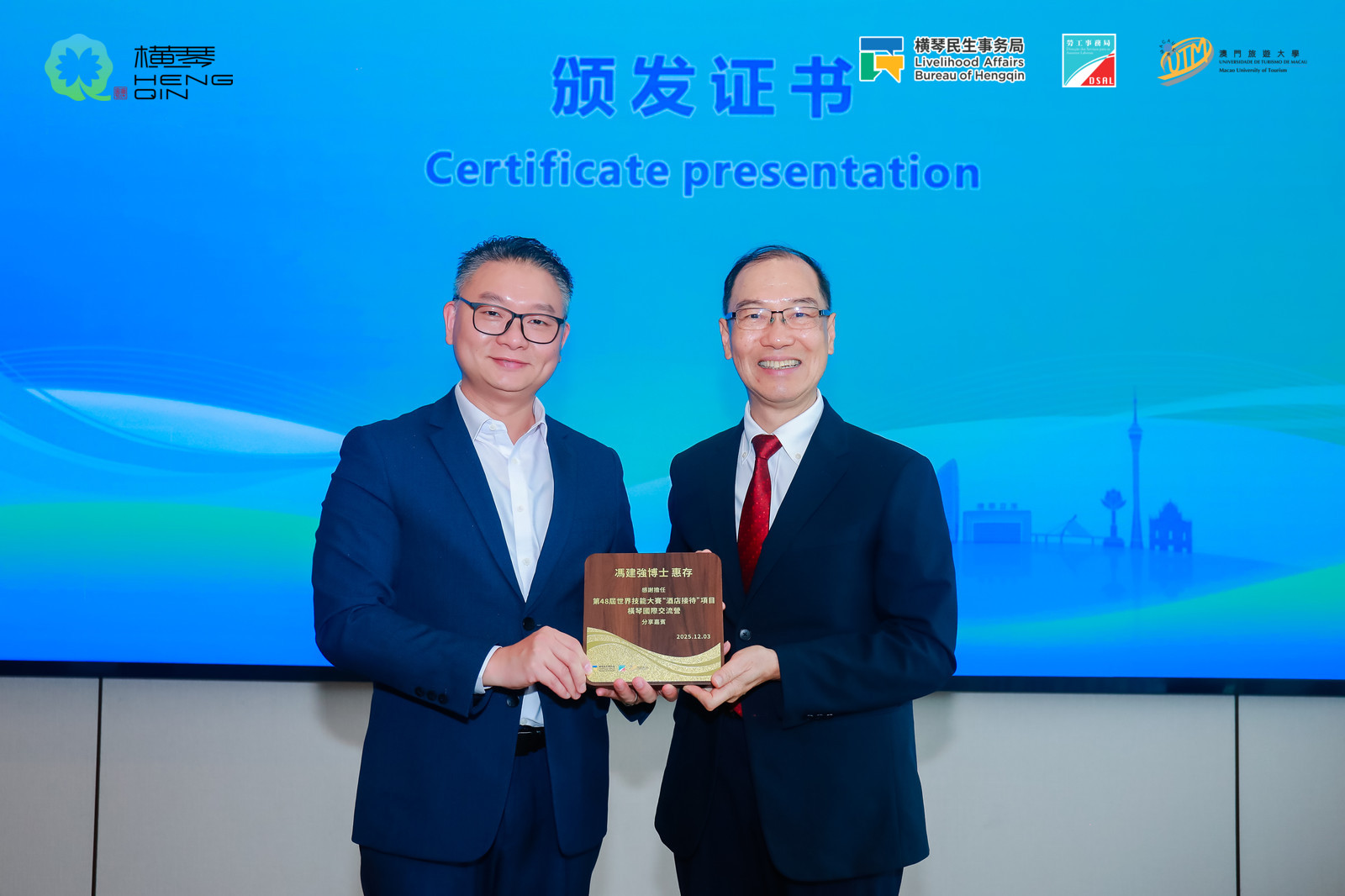 活动主办方向参加交流营的第48届世界技能大赛澳门区选拔赛的专家及青年选手颁发证书