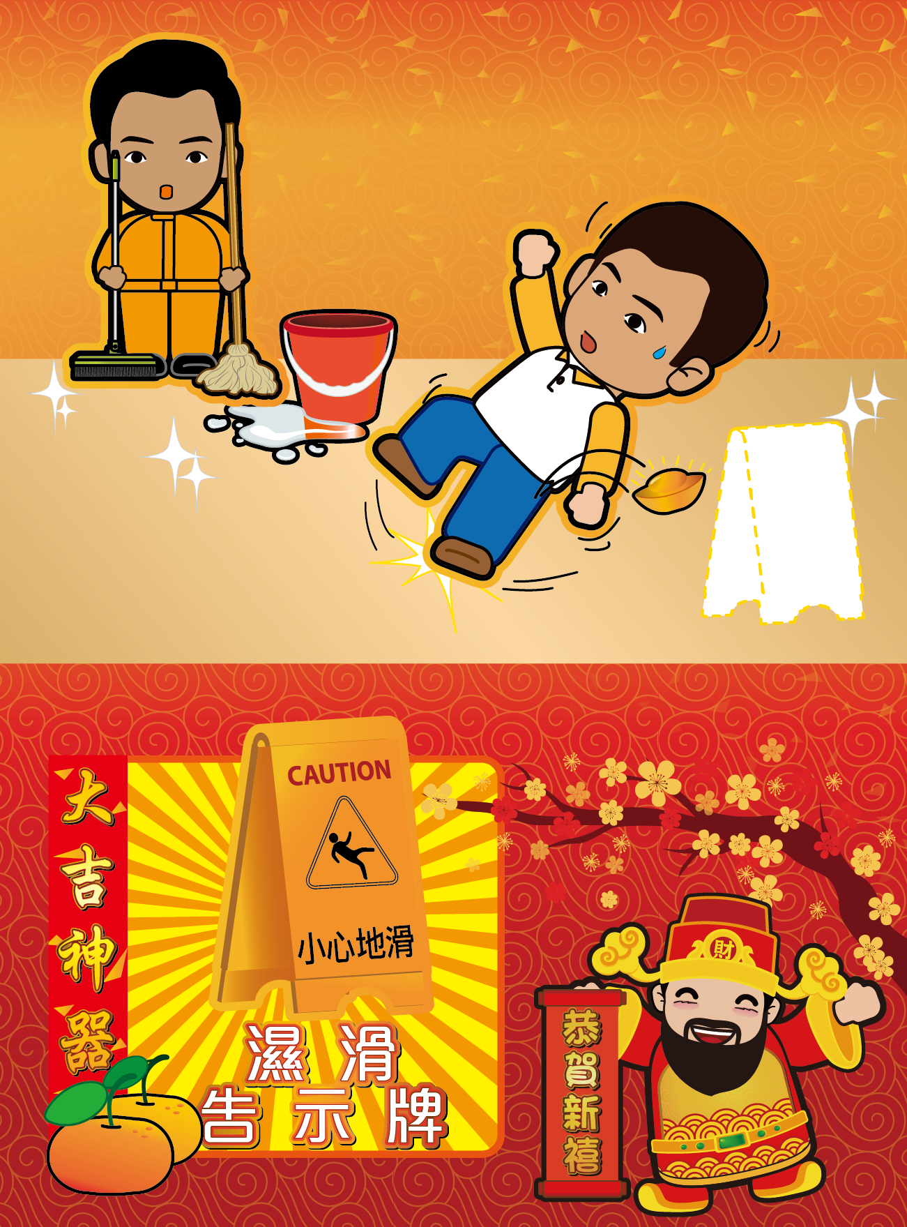 清洗地板时,要摆放湿滑告示牌,否则湿滑嘅你遇上粗心大意嘅地板,好易会跣镬金。