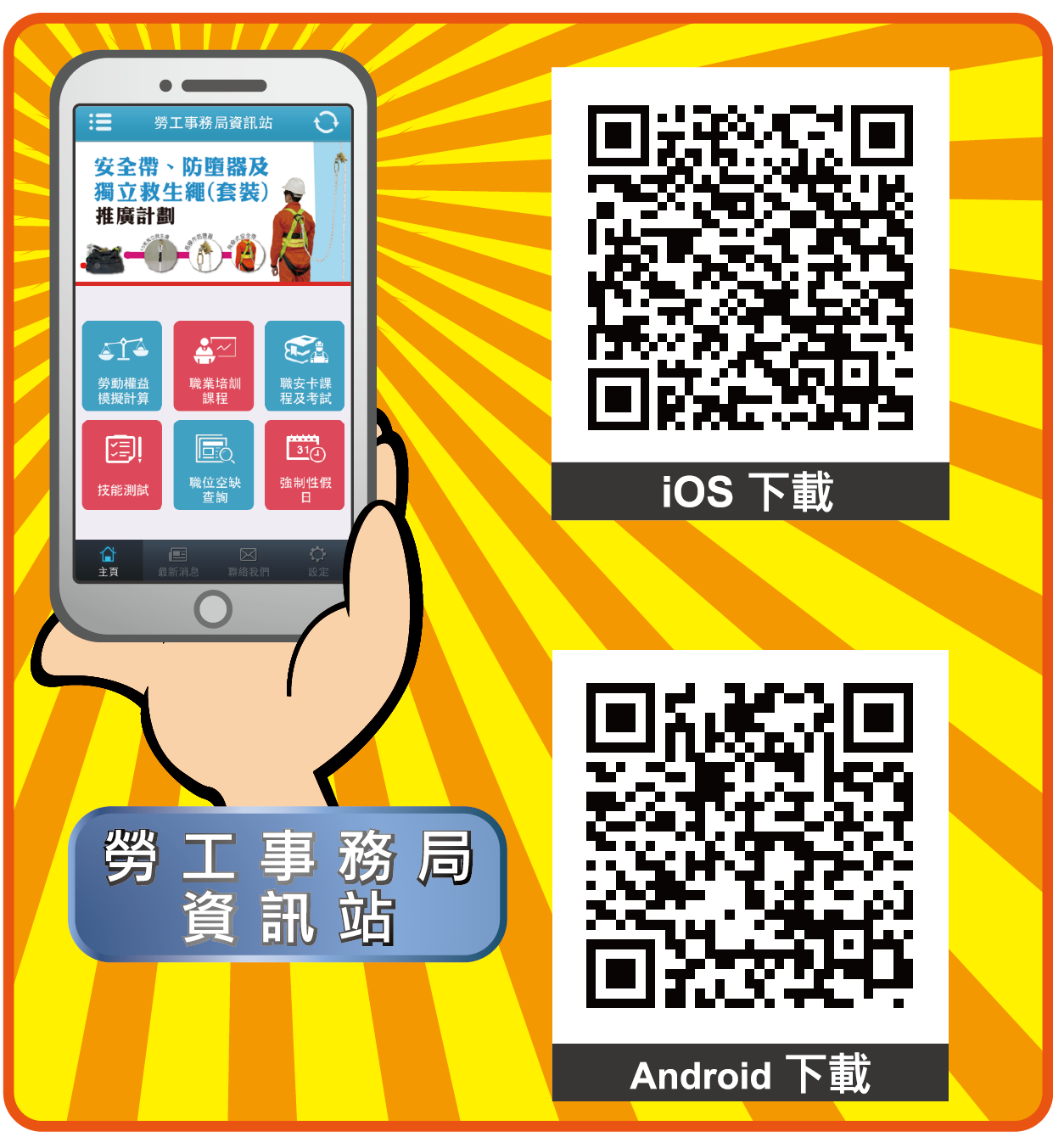 个个都想下载劳工事务局资讯站(App),唔通个个都识下载咩,唔紧要,快D 攞起个电话扫扫以下二维码下载啦。