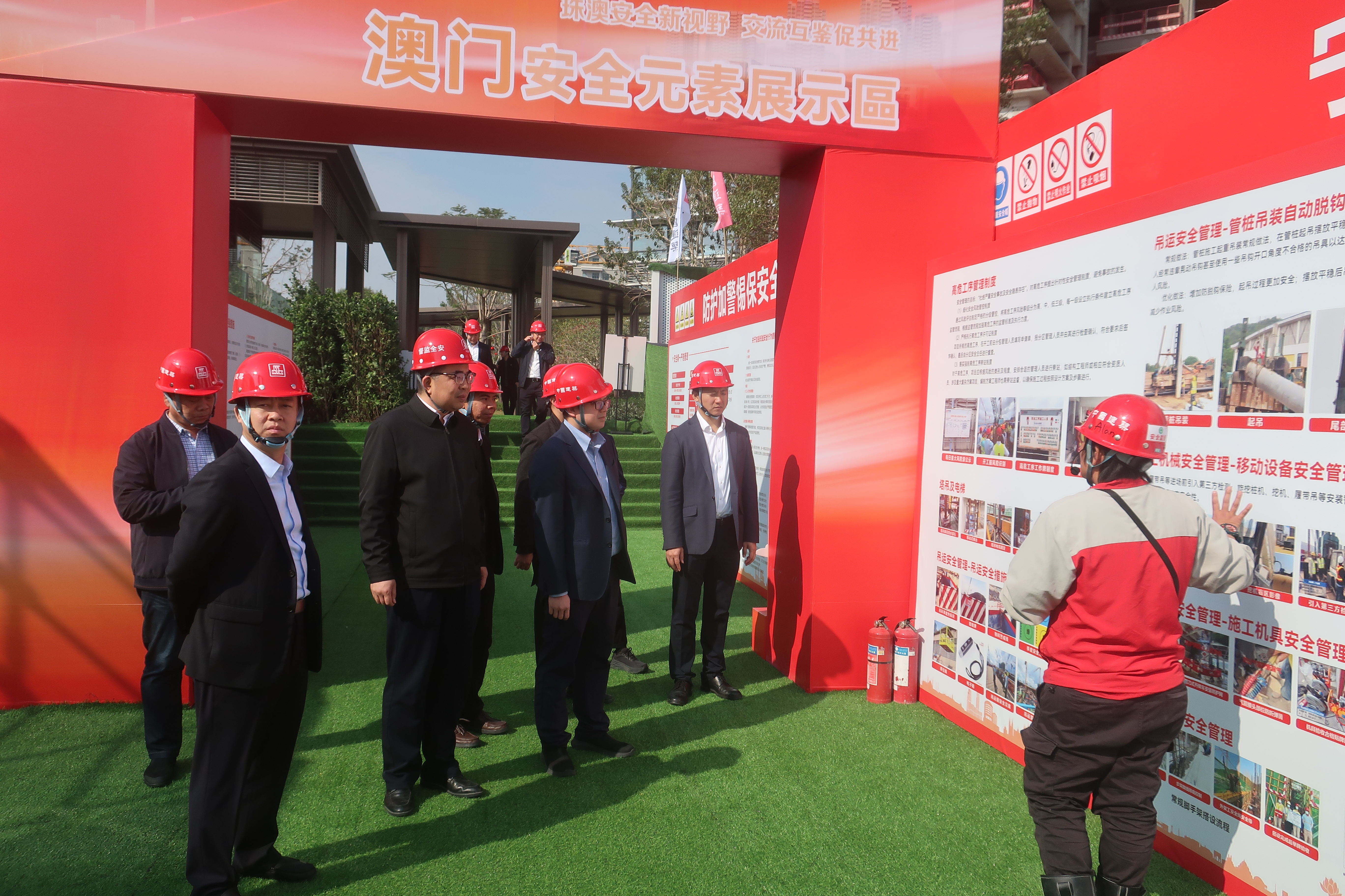 参观现场并设有澳门安全元素展示区, 展示多种针对不同工序的安全设备,以及多款职业安全健康宣传品和工作安全指引等,将澳门在建筑工程管理和安全施工技术要求等方面的内容,与来自珠海、澳门和横琴粤澳深度合作区等地的业界人士分享及作技术交流。
