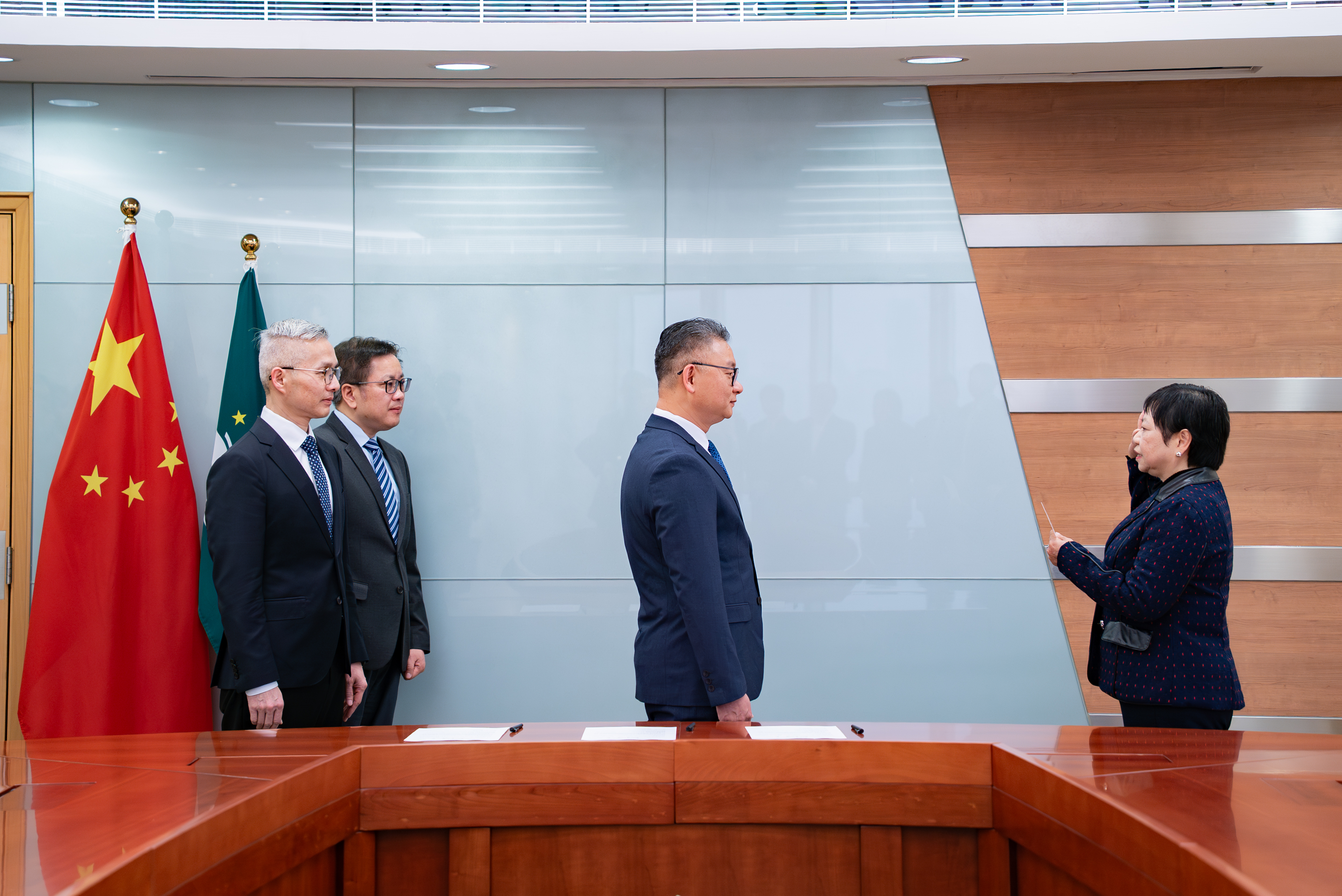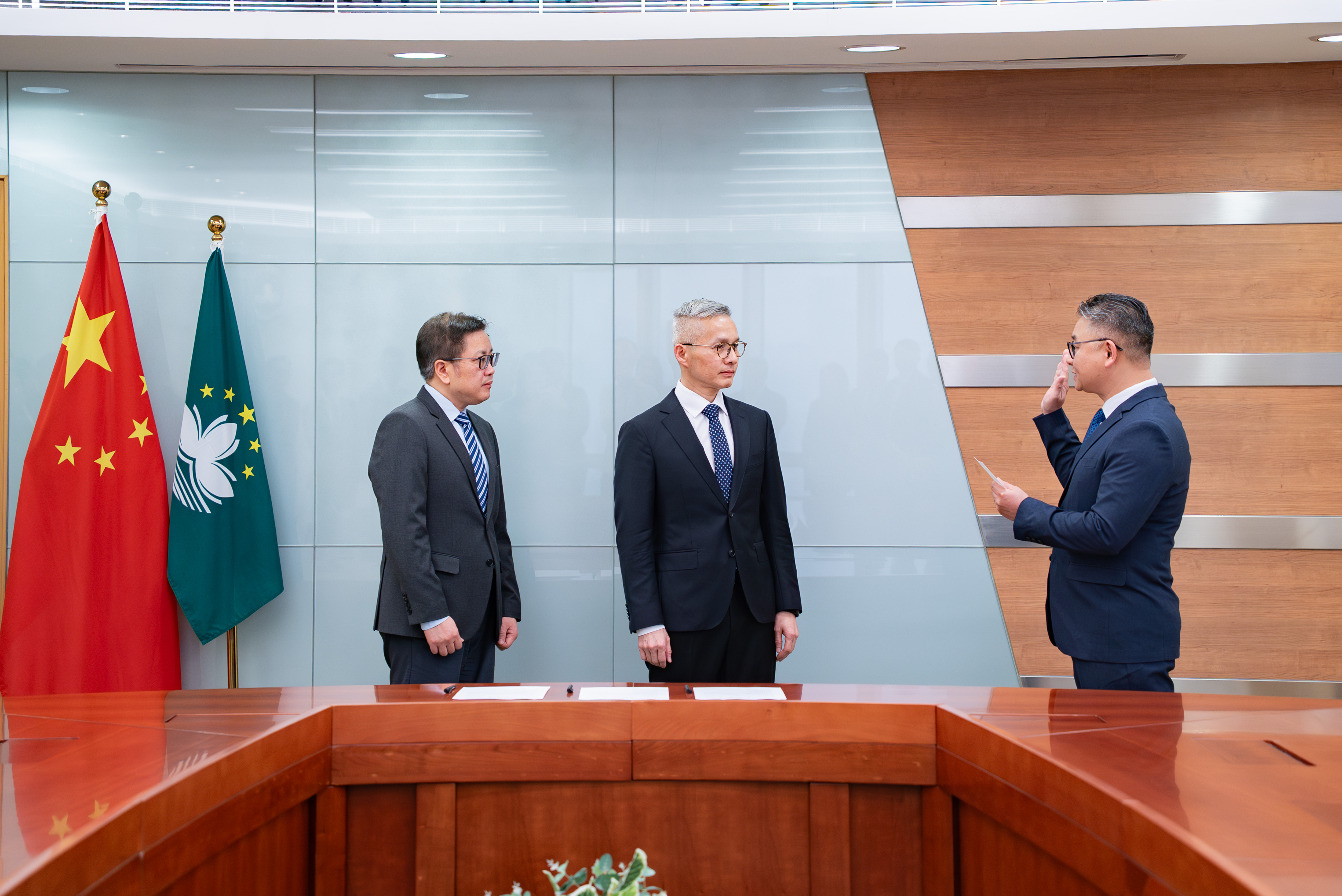 劳工事务局局长陈元童及副局长陈子慧今(18)日宣誓就职,就职仪式由经济财政司司长戴建业主持,并由经济财政司司长办公室主任罗志辉见证。劳工事务局各部门主管人员出席就职仪式。