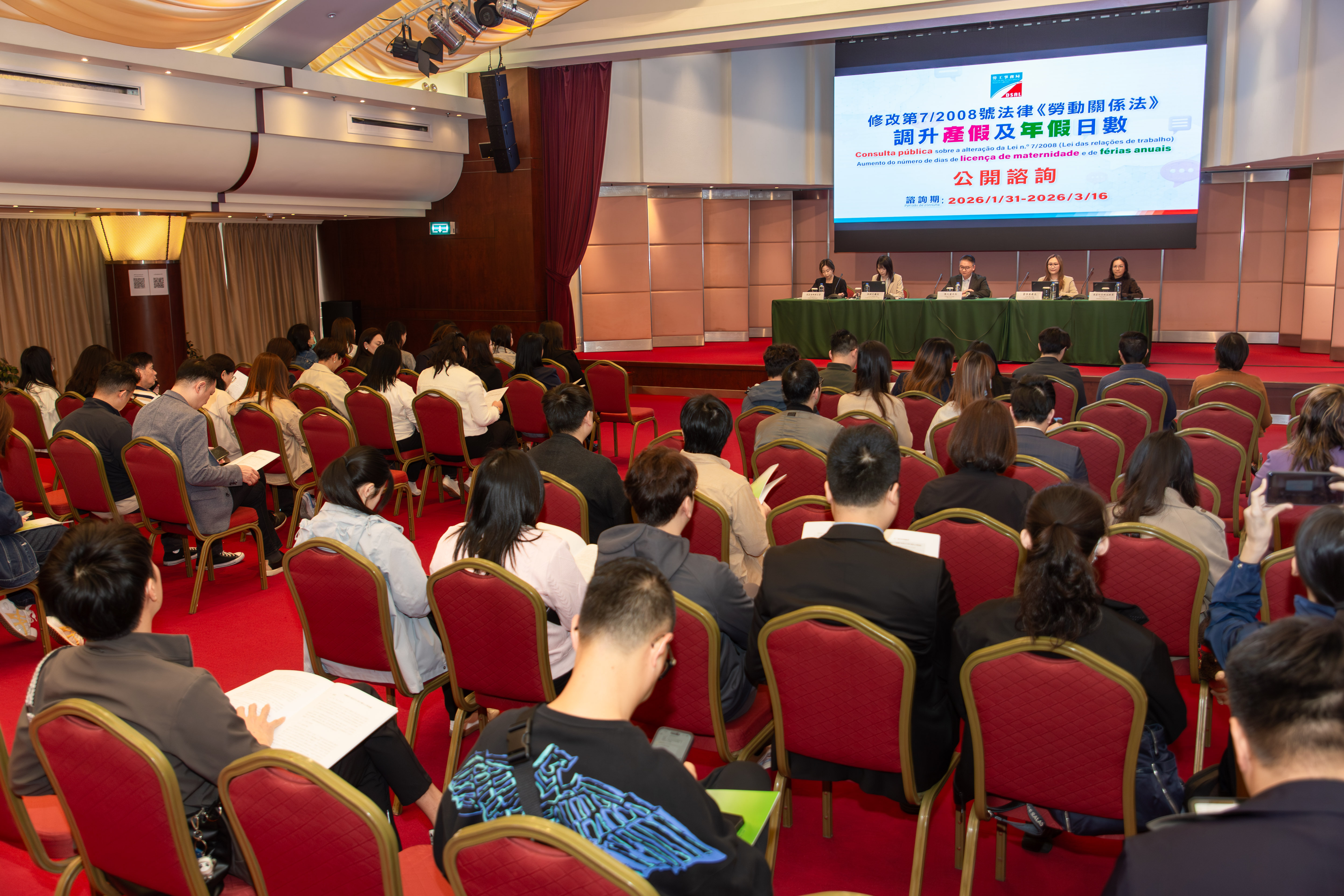 劳工事务局(下称“劳工局”)於1月31日至3月16日期间,就修改第7/2008号法律《劳动关系法》关於调升产假及年假日数展开为期45日的公开谘询。谘询期内合共收到近万份社会各界提供的意见,劳工局衷心感谢各界积极建言献策,共同为完善澳门的劳动权益保障作出贡献。