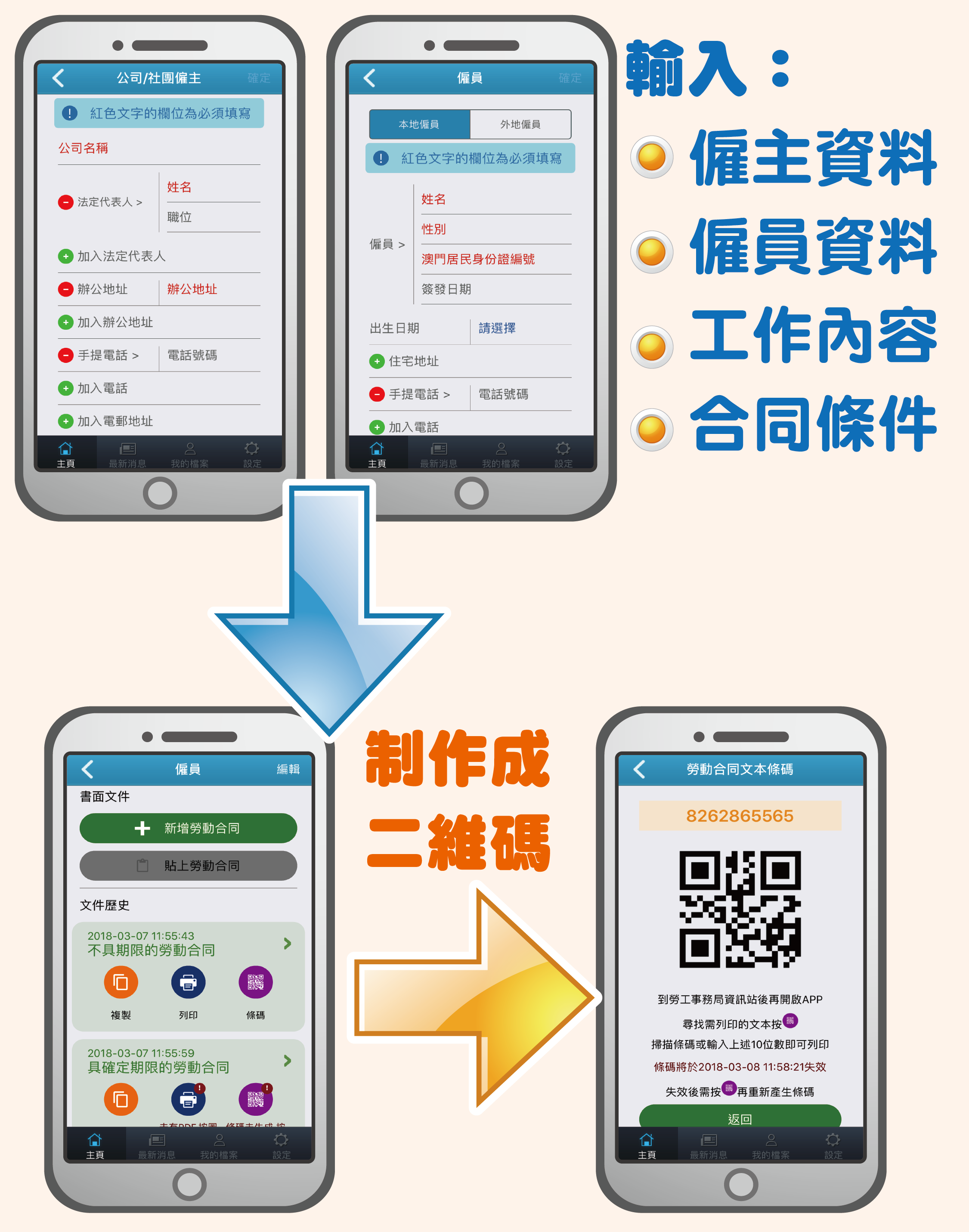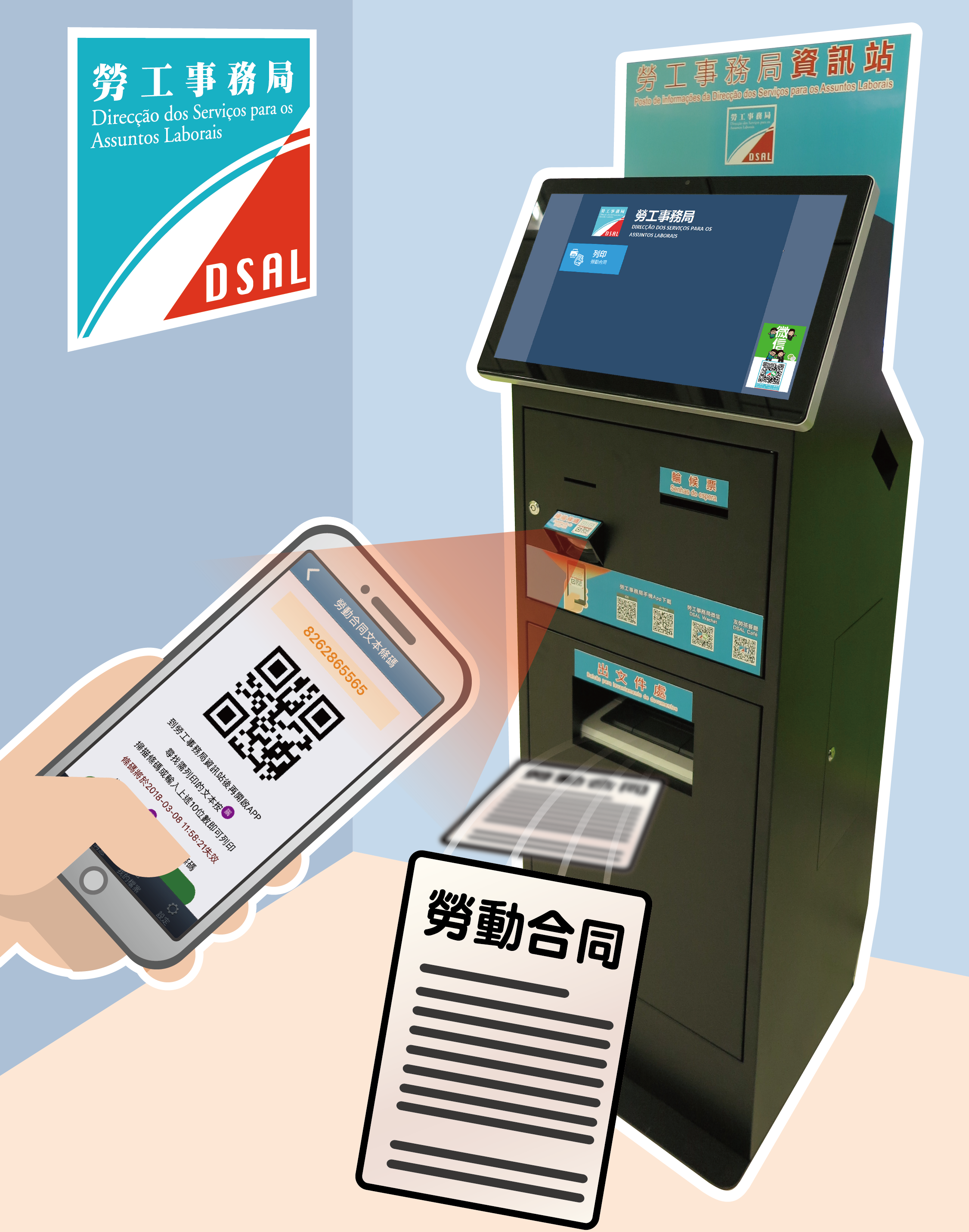 輝哥:我地餐廳冇printer都唔怕!用個app生成二維碼,去勞工局辦公地點* 設置嘅服務站掃瞄手機上嘅二維碼就可以印出黎,免費架!