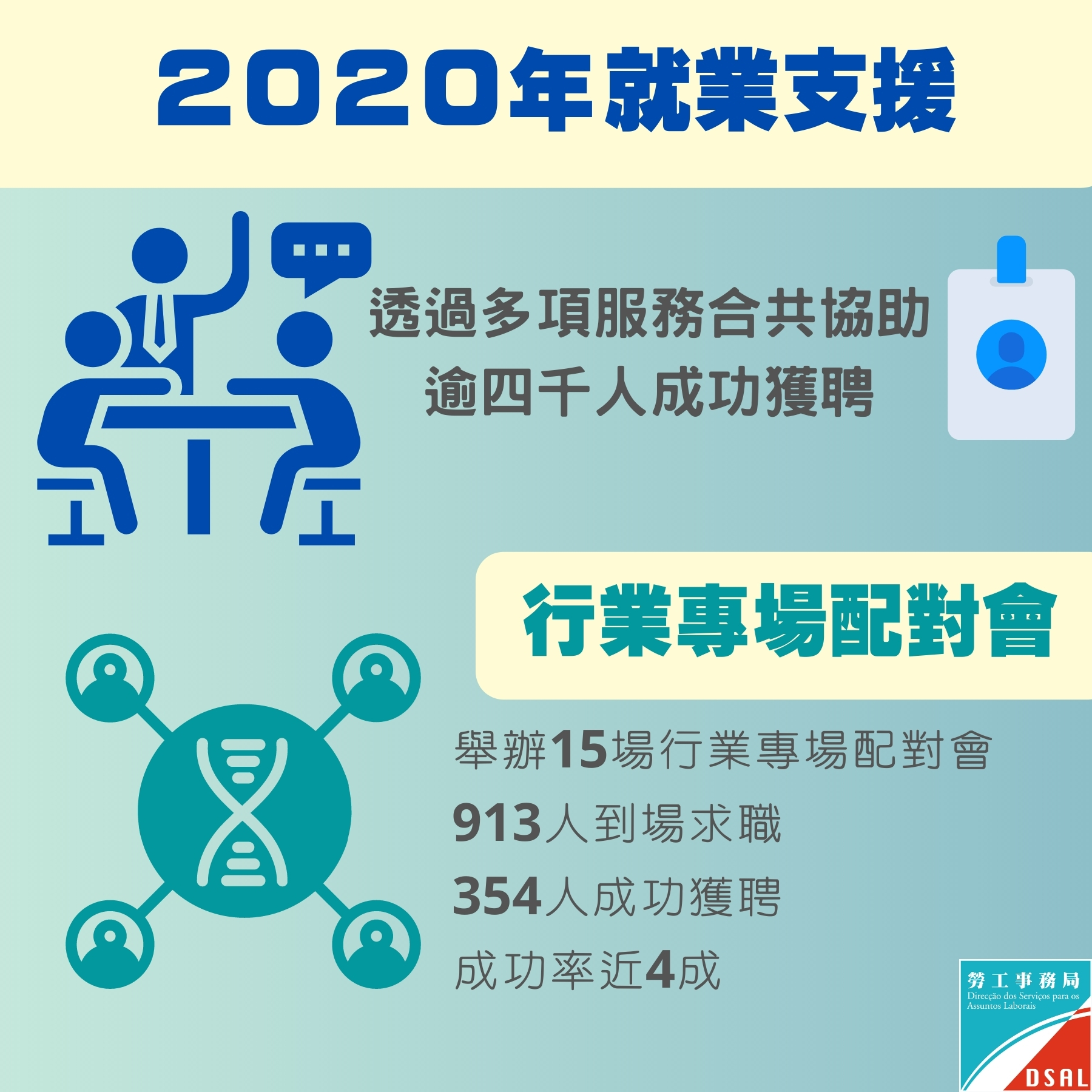 至2020年底共舉辦了15場行業專場配對會,有913人到場求職,共354人成功獲聘,成功率近4成。