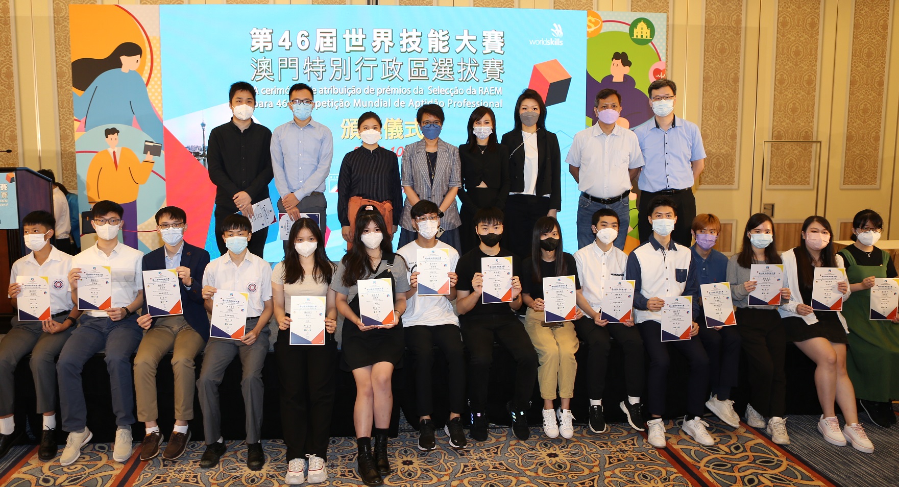 勞工事務局舉行“第46屆世界技能大賽”澳門區選拔賽頒獎儀式,由勞工局領導及主管人員向19個競賽項目選拔賽的優勝選手頒發冠、亞、季軍獎項,鼓勵青年人把握機會提升技能,自我增值,為未來的職業生涯發展打好基礎。