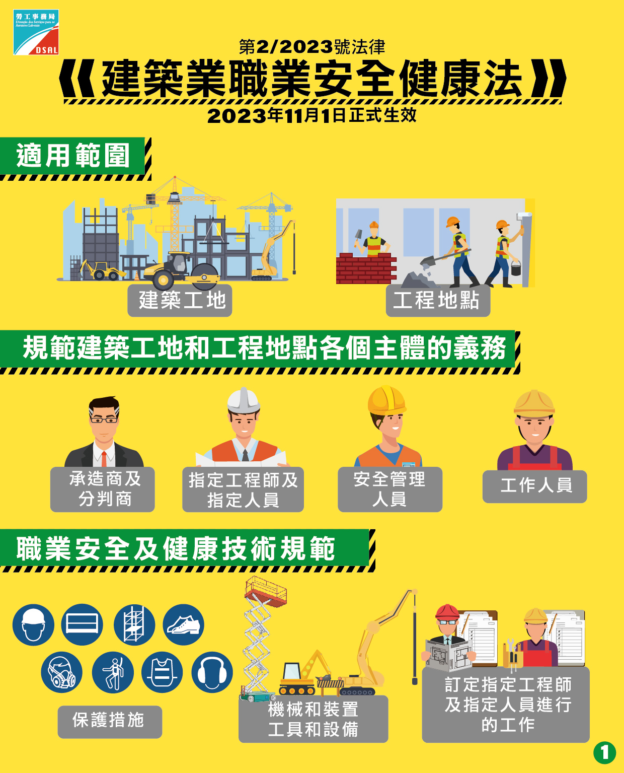 為配合第2/2023號法律《建築業職業安全健康法》的規定,特區政府於本年8月21日在《澳門特別行政區公報》公佈第32/2023號建築業職業安全及健康技術規範行政法規,該法規主要針對建築業現時所採用的施工技術,以及所使用的機械和設備等工作用具的轉變,完善了施工安全規範;就建築業施工經常使用到的設備和常見工序,增加相應的安全措施規定;明確規範須由相關範疇的指定工程師及指定人員進行的工作及具體內容,以及特定工序的施工安全等。有關行政法規將與《建築業職業安全健康法》同於本年11月1日生效。