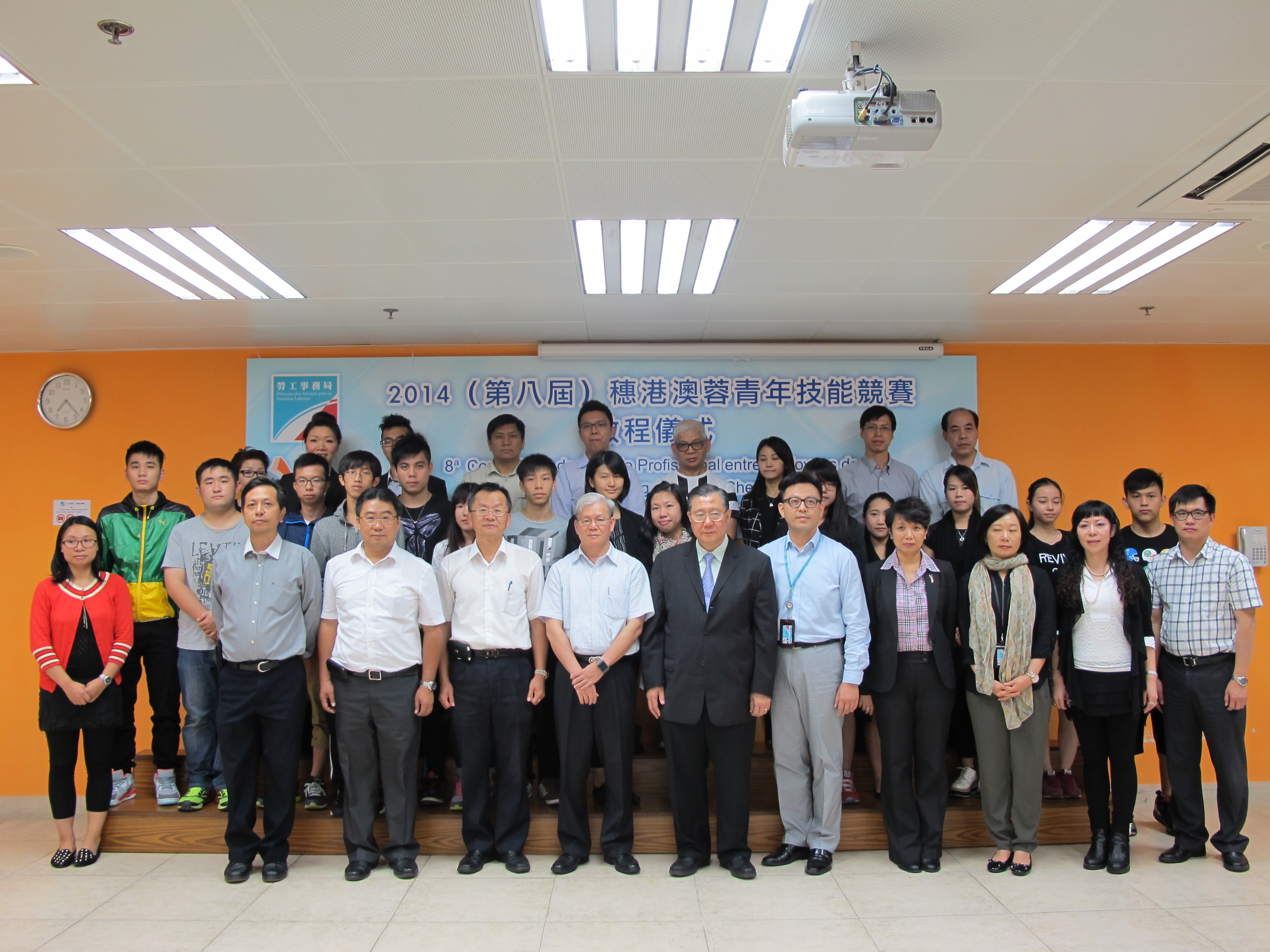 「2014(第八屆)穗港澳蓉青年技能競賽」將於本年10月31日至11月1日一連兩天在香港九龍啟德郵輪碼頭舉行。勞工事務局早前透過強化訓練和選拔賽分別選出最優秀的15人代表澳門參加全部五個競賽項目,分別有「智能家居電器安裝」、「機器人」、「時裝設計與技術」、「動漫設計及製作」及「美容護理」。 在澳門代表團舉行啟程儀式上,勞工事務局局長黃志雄、副局長劉偉明分別向參賽選手頒發早前選拔賽獲勝之獎金及獎狀,並勉勵各選手要全力以赴,發揮水準,爭取佳績,為澳門爭光。 為發掘有潛質的青年人學員,勞工事務局在今年2月起通過社團、學校等多個渠道公開招募選手,隨即進行密集式的訓練和選拔。同時邀請澳門大學及澳門生產力暨科技轉移中心擔任競賽項目代表單位,為選手的選拔、培訓及競賽提供技術支援及專業意見。經過嚴謹的培訓及遴選後,「智能家居電器安裝」的陳志麟、羅偉豪及張焯能、「機器人」的鄒寶文、黃俊廷、藍煥婷及劉偉傑、「時裝設計與技術」的趙穎壯、高靜雯及倫潁如、「動漫設計及製作」梁俊朗、楊崇德及「美容護理」的甘梓茵、林潔寶及李少慧,合共15人將代表本澳參加是次競賽。 「穗港澳蓉青年技能競賽」是由廣州、香港、澳門及成都聯合舉辦的職業技能競賽活動,目的是提高四地青年的職業技能水平,並為四地職業技能培訓機構建立合作及發展的平台,促使社會更重視職業技能的發展,推動培養多元人才。競賽以個人及隊制形式進行,並由專家作為評判,而規則及評分標準達到國際競賽的要求,希望藉此為參加世界職業技能大賽培養備用人選。另外,為宣傳及推廣青年職業培訓的訊息,場內設有嘉年華區,以展覽及實際技術操作展示等方式,讓公眾認識四地的文化、經濟及職業培訓的發展歷程。