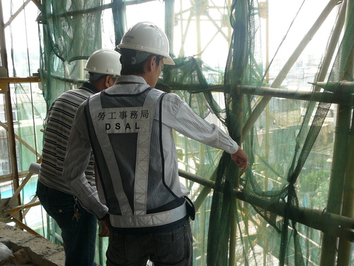 勞工局人員巡查棚架的情況