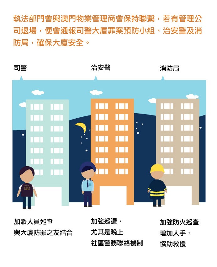 ,包括房屋局、環境保護局、民政總署、海事及水務局、司法警察局、治安警察局及消防局,連同自來水公司及清潔專營公司,