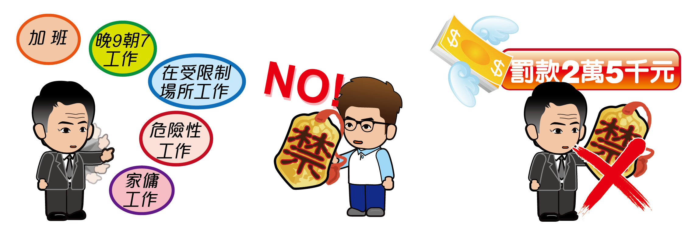 做嘢除左吸收經驗和吸「金」外,安全都好重要,如果心口鑿個勇字就衝入沙塵滾滾嘅社會,隨時中招。今個回合醒俾大家工作安排上嘅招式,遇到以下「禁」令情況,記得show個令牌出嚟防身: