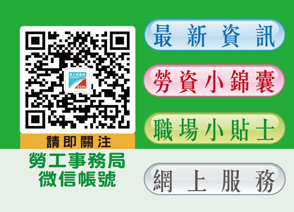 小編今日要大聲話比大家知,我哋勞工事務局嘅WeChat帳號開咗啦!開咗啦!開咗啦!開咗啦!(灑花)  (重要嘅事當然要講N次啦~ )