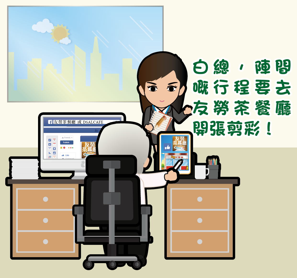「友勞茶餐廳」係一個由勞工事務局管理嘅Facebook專頁,以輕鬆嘅形式宣傳本局各項資訊同法律法規,歡迎各位朋友一齊嚟幫襯下我哋嘅「茶餐廳」啦