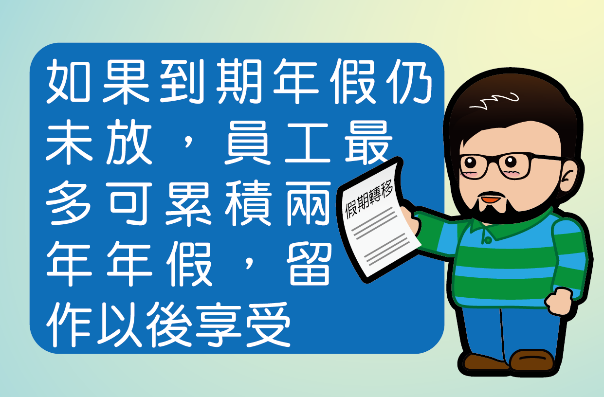 如果到期嘅年假真係放唔到,亦可以由勞資雙方協議累積到下一年,最多累積兩年~~(舉個例,原在2016年享受嘅年假,可累積最多兩年至2018年內享受。)