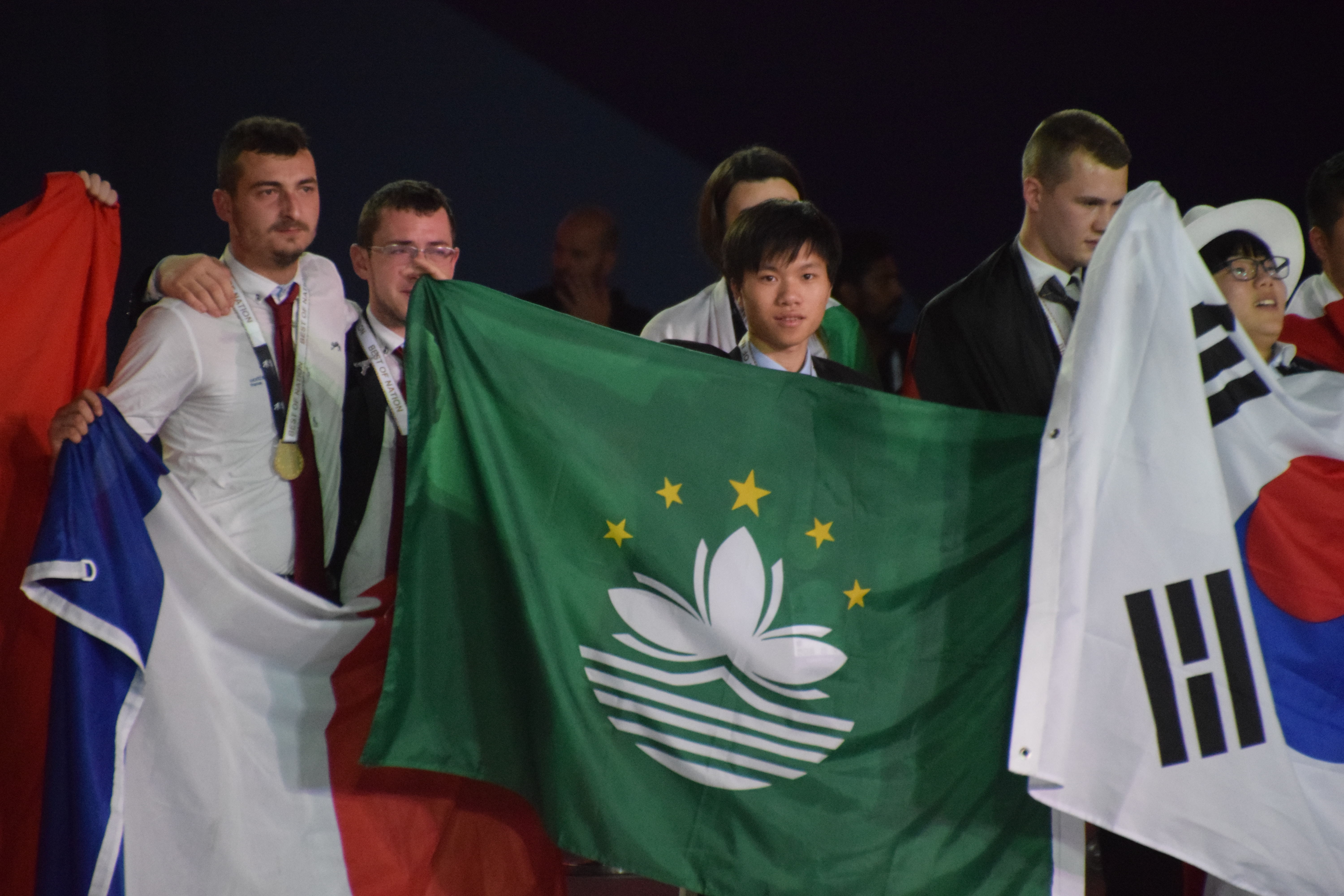 奪金澳門選手在台上接受祝賀