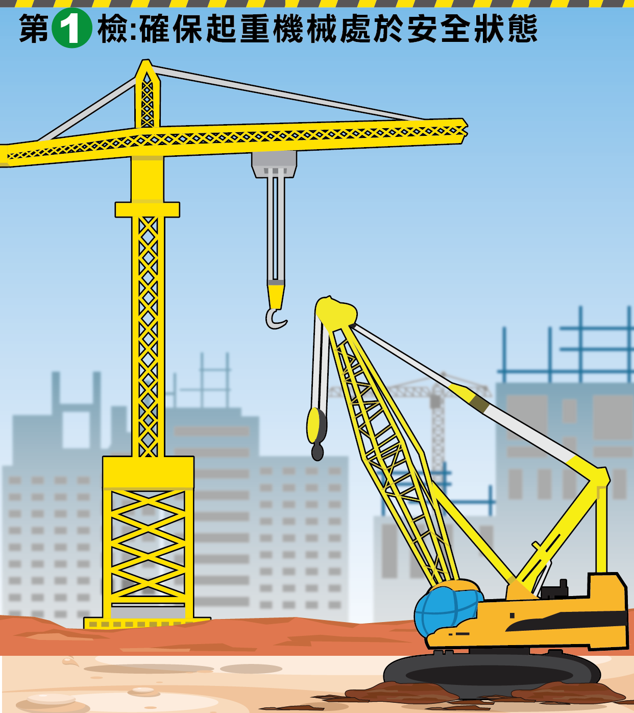 最後提埋大家,喺假期後重返工作,都須由具資格人員對起重機械、吊重設備、棚架、工作平台同挖掘工程嘅工作進行檢查,確保喺安全狀態下,先可以恢復工作。