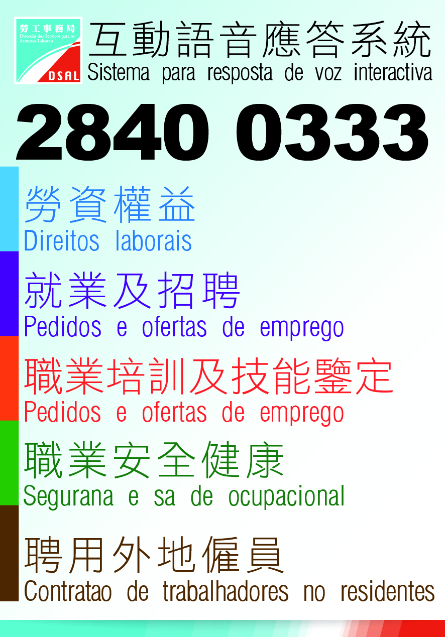 地址:澳門馬揸度博士大馬路221-279號先進廣場大廈 電話:(853) 2856 4109 傳真:(853) 2855 0477 電郵:dsalinfo@dsal.gov.mo