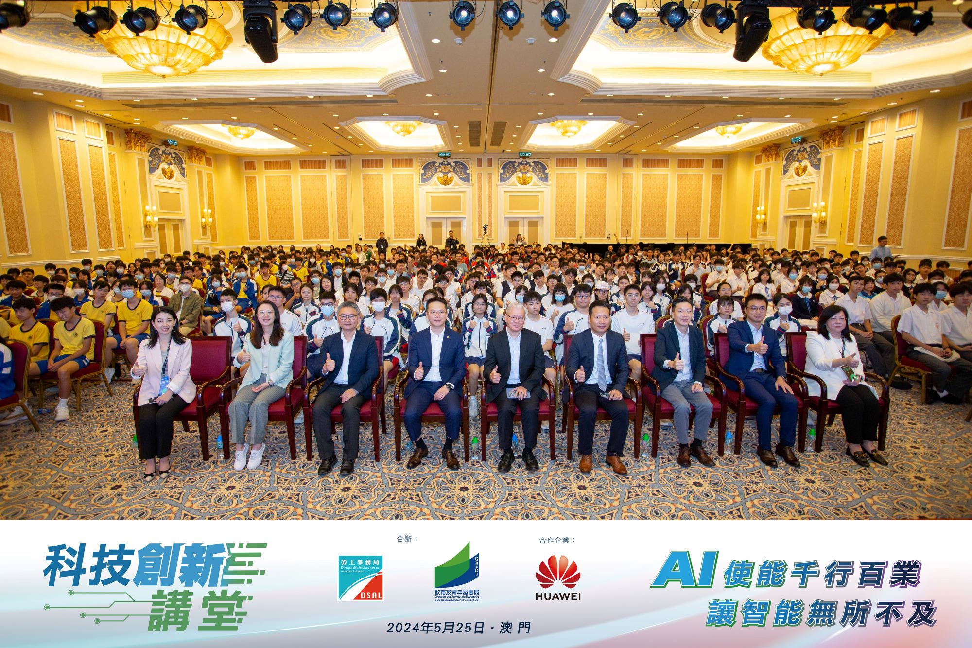 為讓求學青年有更多機會接觸高新科技產業,勞工事務局再度聯同教育及青年發展局,以及華為服務(香港)有限公司澳門分公司(下稱“華為澳門”)合作舉辦“科技創新講堂”,於本月25日上午假澳門路氹威尼斯人會議展覽中心舉行,活動吸引了本澳近500師生參與。