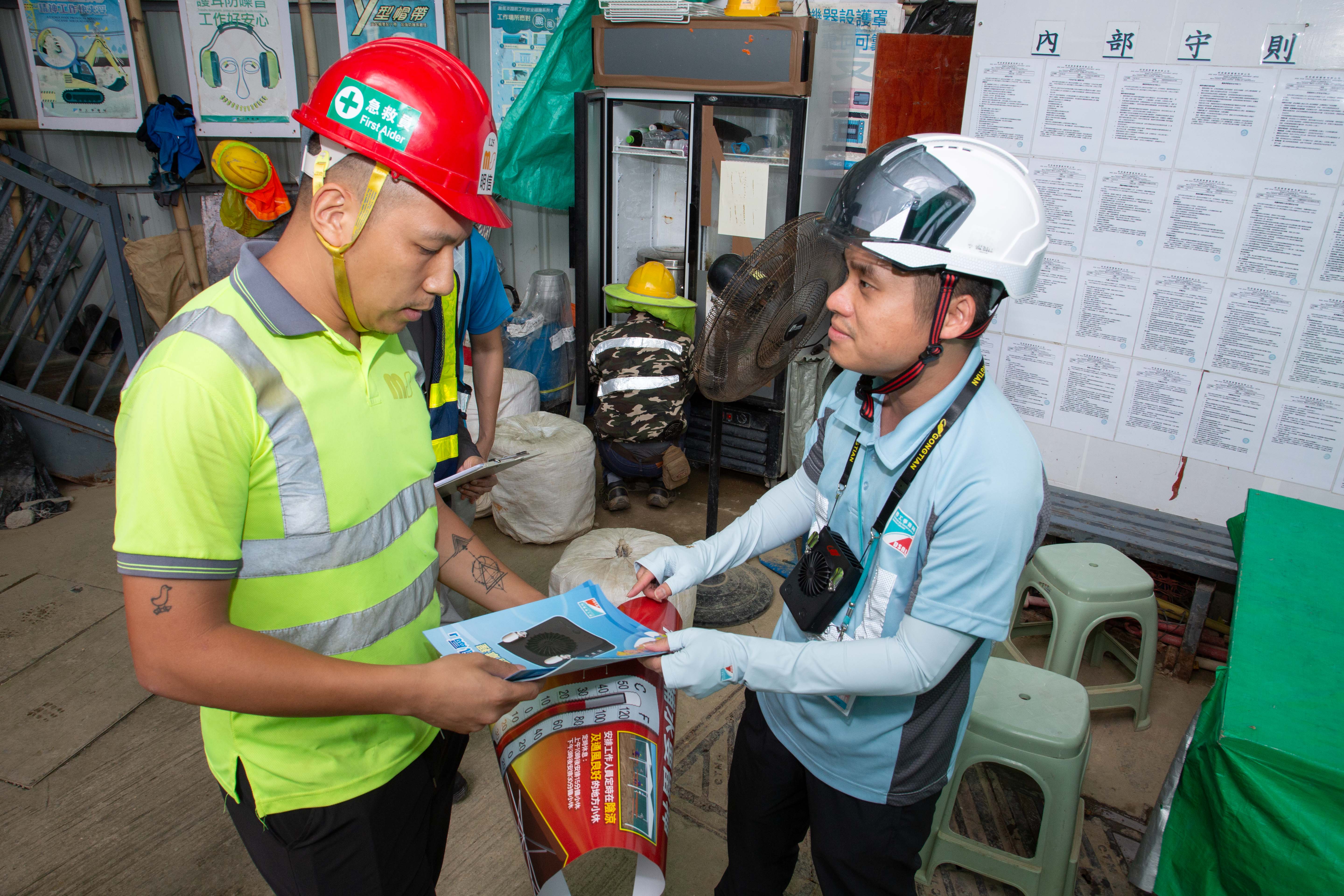 勞工局人員巡查期間向工友宣傳預防中暑知識