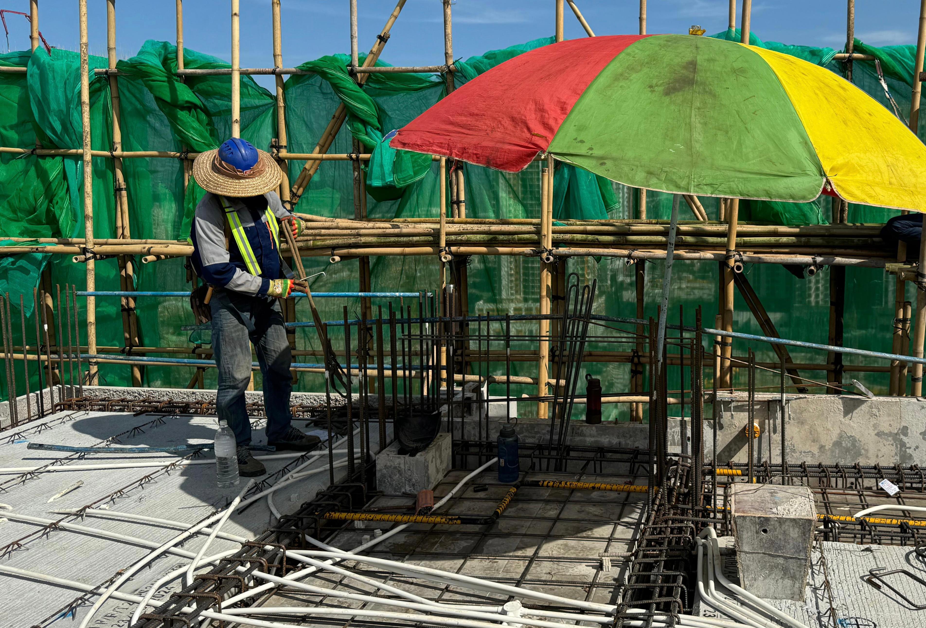 承造商於戶外施工地點架設臨時遮陽傘