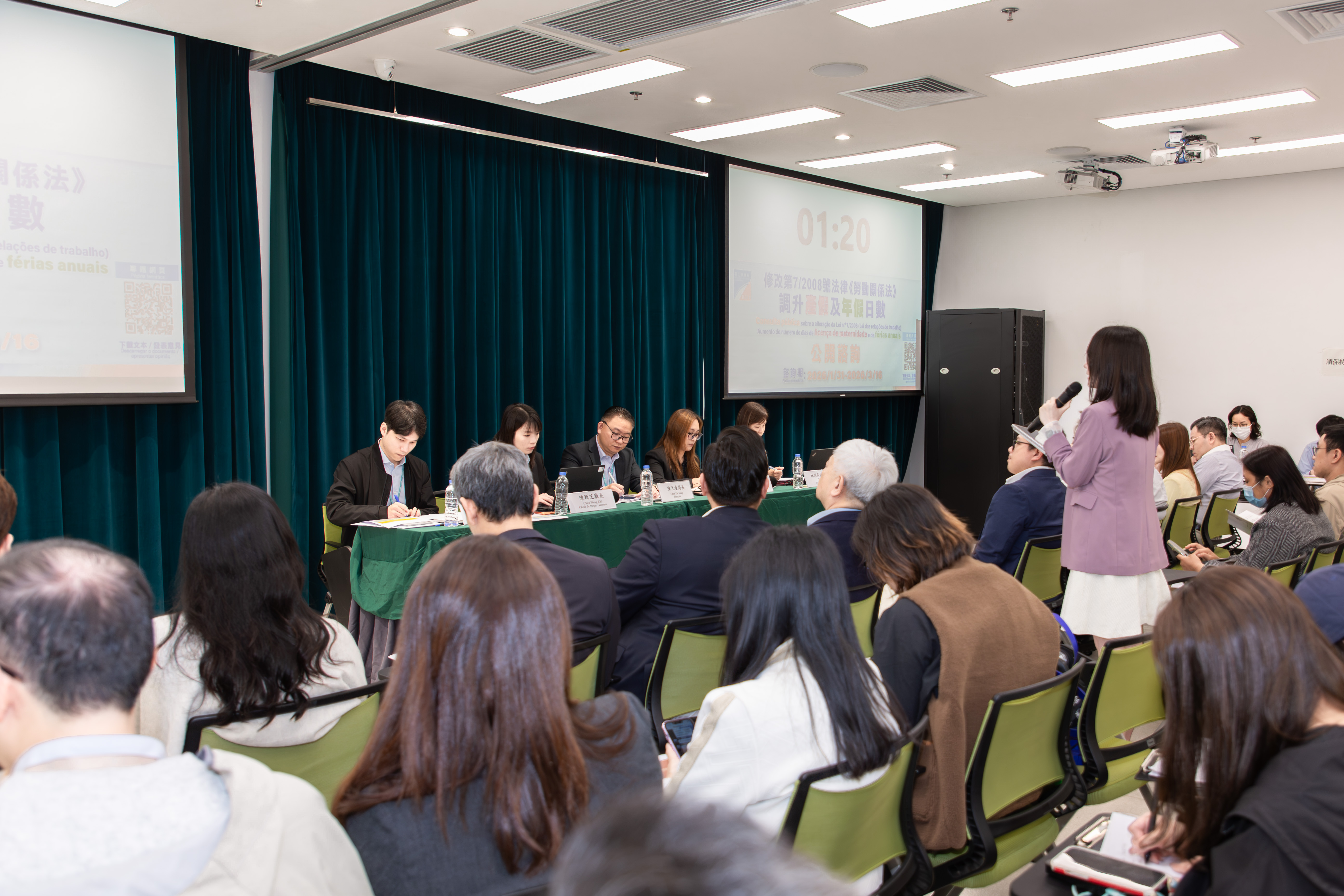 勞工局在諮詢會中表示,是次修法主要是優先修訂社會較為關注的調升產假及年假日數兩大方面,務求逐步提升僱員的勞動權益,以便更好平衡工作與家庭生活,同時也有助促進澳門經濟社會的健康及可持續發展。與會者在諮詢會上的發言與建議,既體現了社會對僱員勞動權益的關注,也為特區政府完善相關法律、優化勞動政策提供了重要參考。